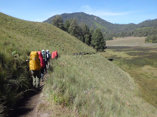 di mulai lah perjalanan kami menuju ranu kembolo. sebelumm kami menuju ranu kumbolo kami melewati pos 1 hingga 4 perjalanan ini sangat menunguras tenaga, karena track yang terjal, dan jalur yang berliku.