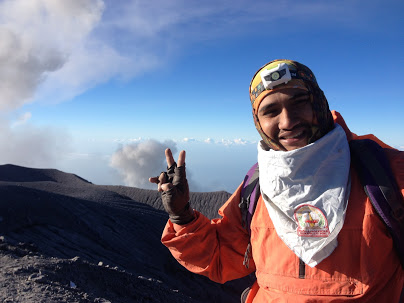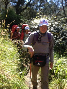 mungkin kami yang muda selalu mengeluh setiap langkah demi langkah. tapi beliau hanya tersenyum dan selalu berkata,"ayo semangat dkit lagi sampai puncak" ujarnya.