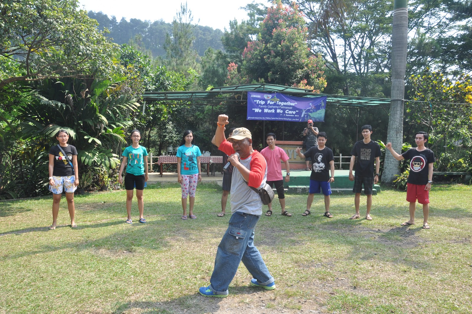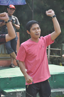 lihat betapa semangatnya beliau dengan jaket berwarna kuning.