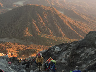 perjalanna yang penuh dengan harapan ini tak kunjung sampai, kakai sudah mulai lelah. tapi debu debu yang bertebrangan membangkitkan kami semua untuk tetap segera bergegas .banyak para pendaki yang melihat dan bersapa dengan beliau, mereka kagum dengan apa yang dilihatnya. karna semangat beliau dan sapah ramah yang selalu dilontarkan beliau ketika bertemu para pendaki.