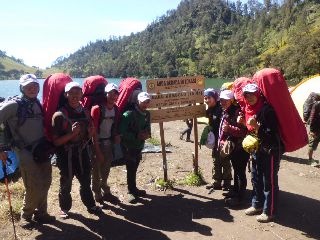 kami sampai di ranu kumbolo pukul 19.09 . masang tenda , masak dan beristirahat