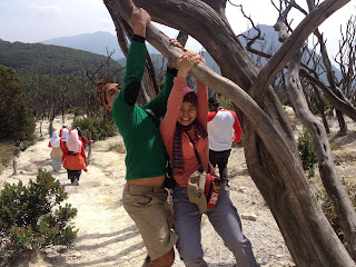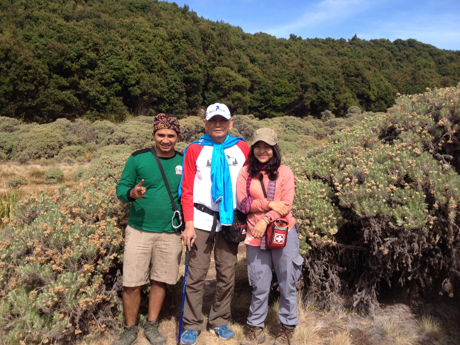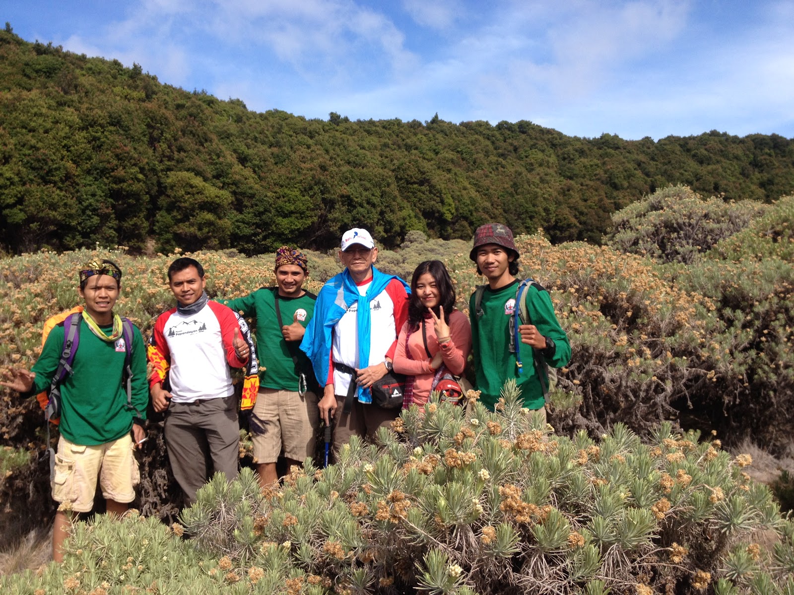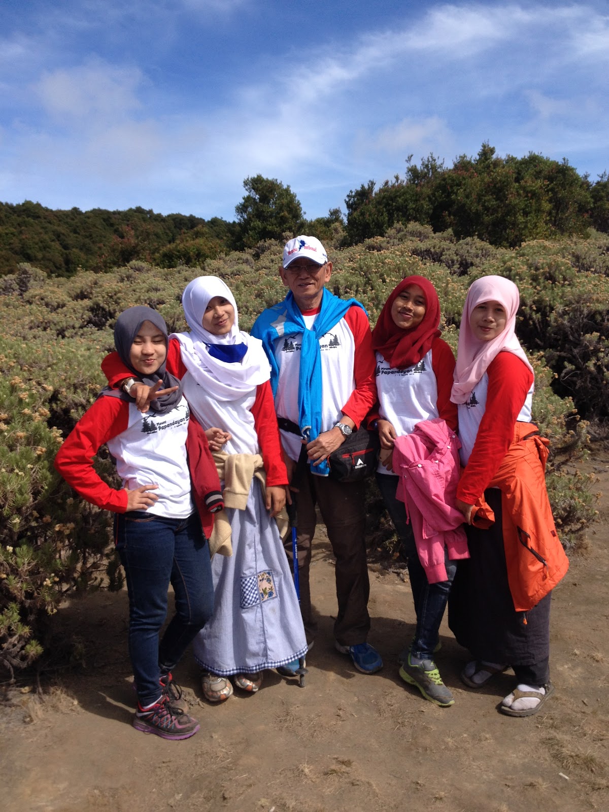 mungkin kami yang muda selalu mengeluh setiap langkah demi langkah. tapi beliau hanya tersenyum dan selalu berkata,"ayo semangat dkit lagi sampai puncak" ujarnya.